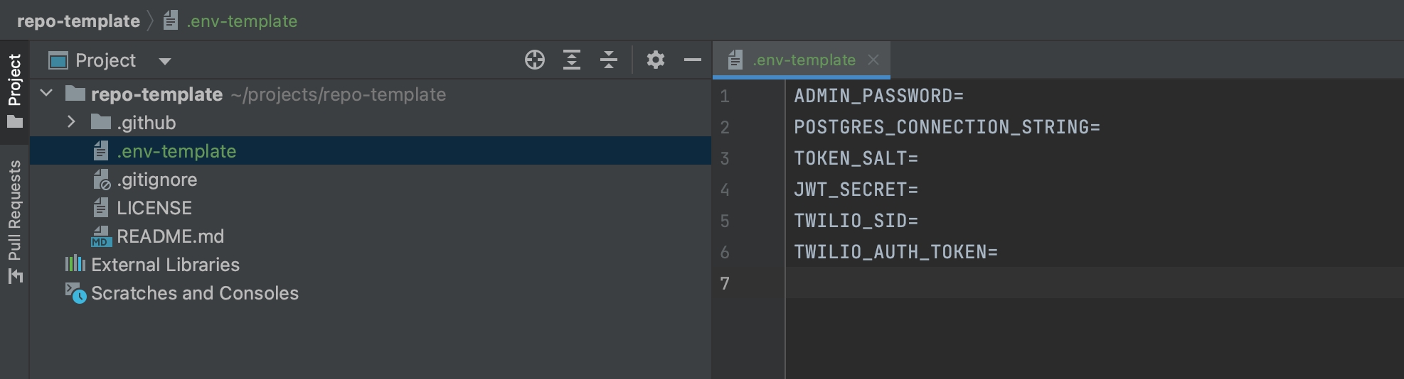 file used by the application at runtime. Let's scaffold our template by mapping out the environment variables our application requires: